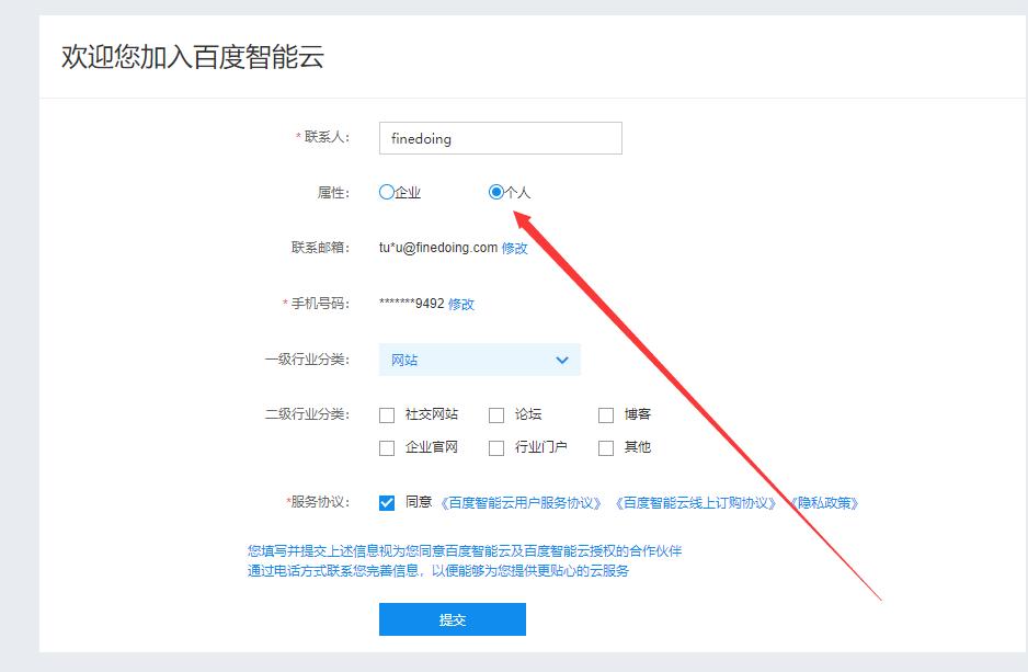 1.登錄 百度AI開放平臺(tái) ai.baidu.com,注冊(cè)并登錄后,在歡迎頁(yè)面中選擇“個(gè)人”即可