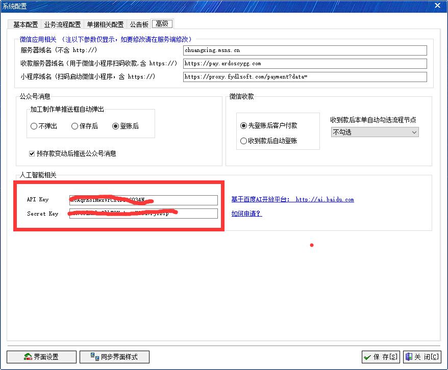 8.拿到Key后填到飛揚(yáng)動(dòng)力軟件【系統(tǒng)配置】相關(guān)項(xiàng)中