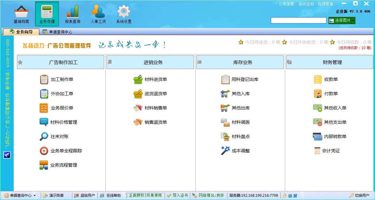 使用廣告公司管理軟件如何進行業務對賬 用戶在使用廣告公司管理軟件的時候,一般都比較關心業務對賬這個功能 在以前開手工單據的時候,業務對賬是比較麻煩的,所以,飛揚動力廣告公司管理軟件為了解決廣告公司的困擾 在軟件中,專門設置了一個“往來對賬”的功能,這個功能操作起來十分的簡單方便。 現在小編就來帶著大家,先來了解一下對賬這個功能吧。 對賬這個功能是在“業務處理....